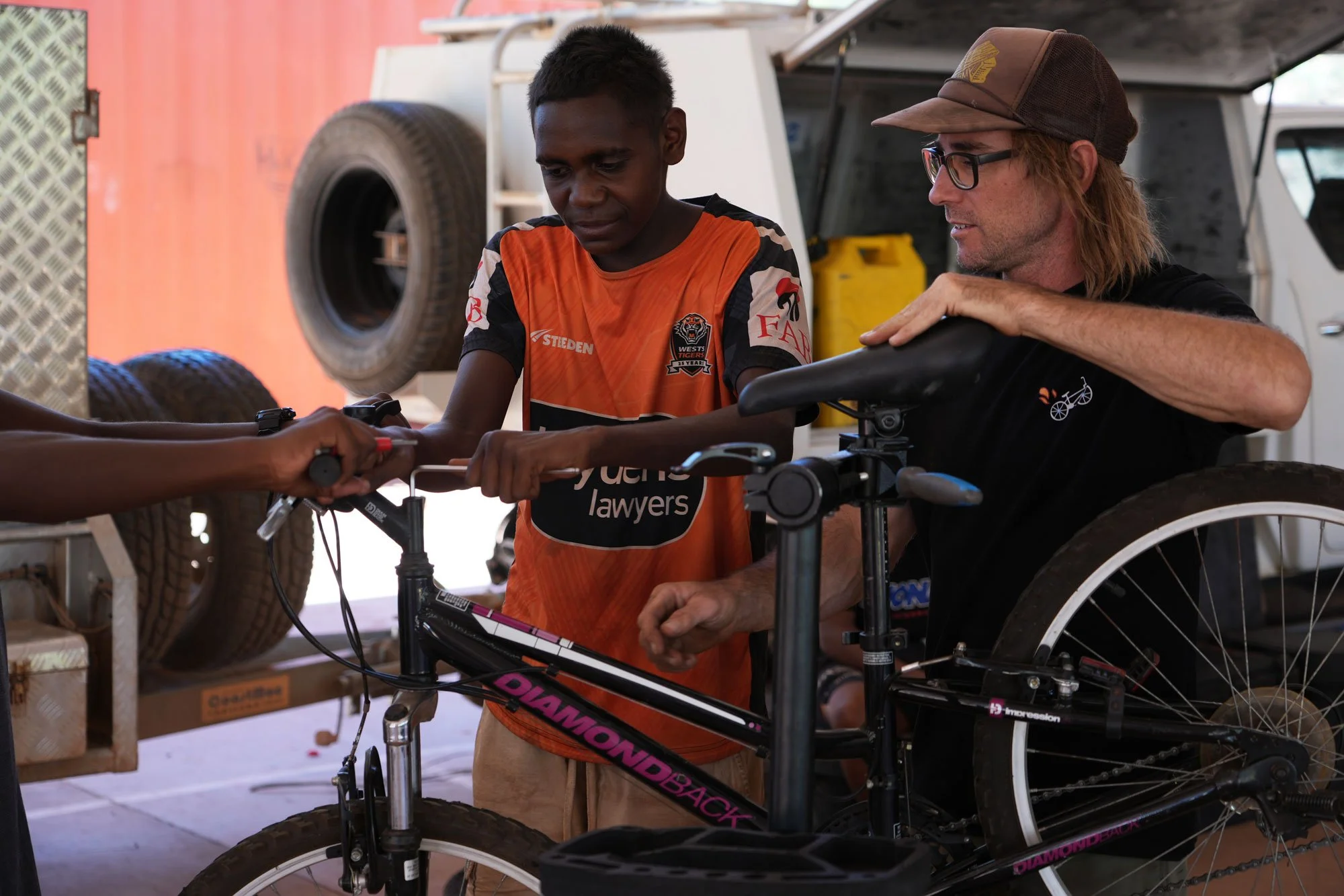 Delivered in remote communities across the Northern Territory during school holiday periods. Multi-day workshops bring bikes into community, support young people to fix and build bikes, and finish with group rides that build confidence, skills, and connection.
